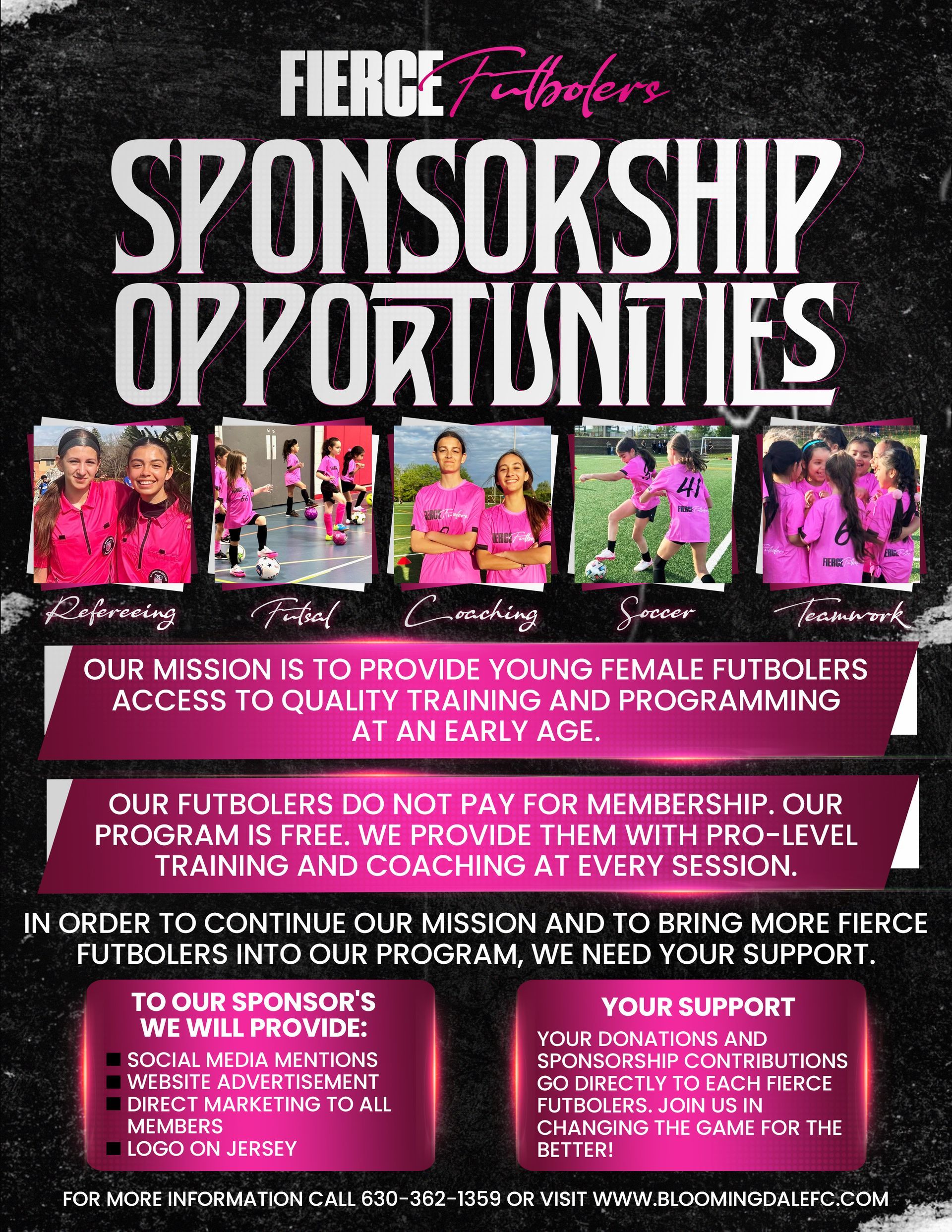 Coaches and referees will consist of our female Lightning futbolers who volunteer their time.