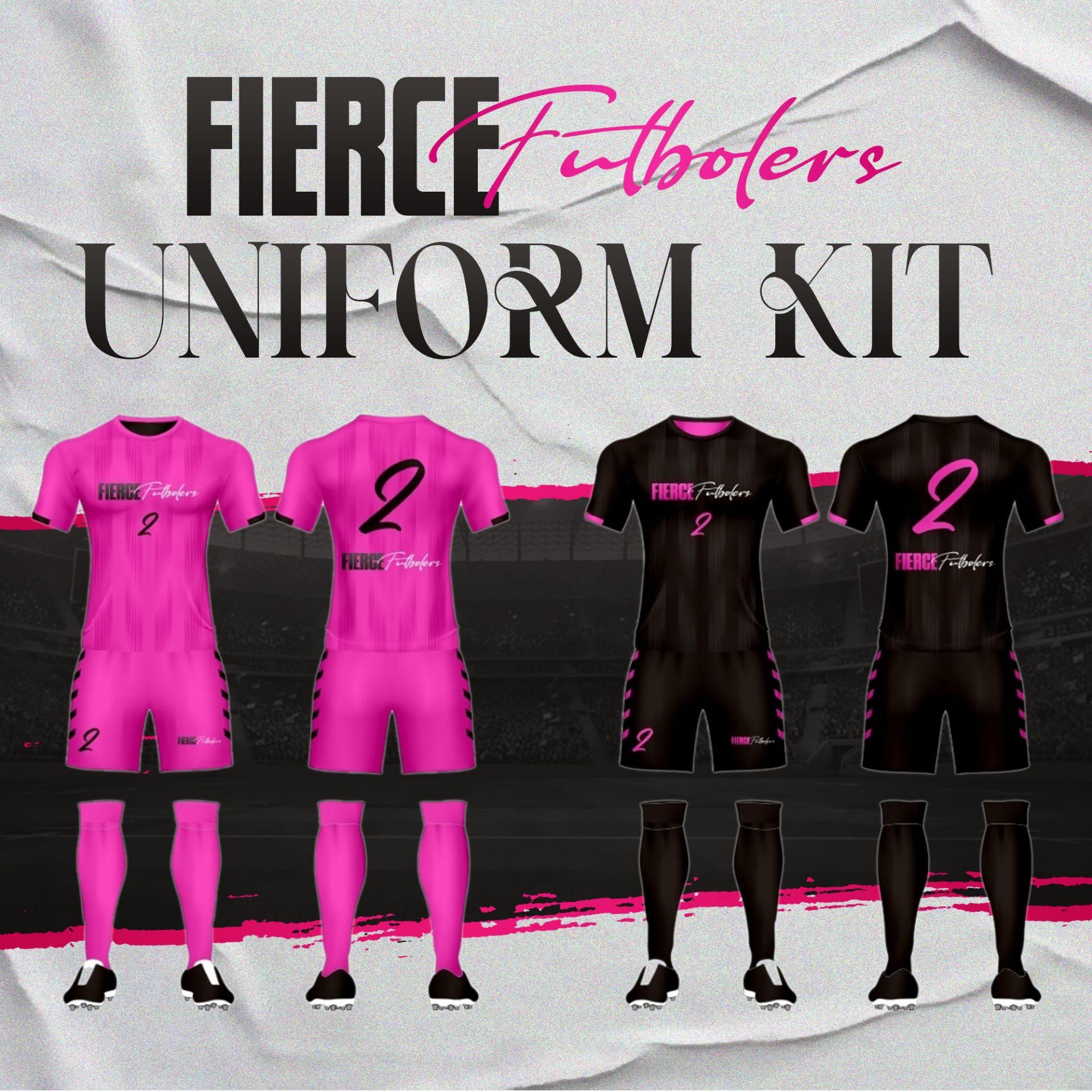We donate a pink practice shirt (only) to our futbolers at their first session. Our game day custom/reversable kit must be purchased separately. and not required to participate.