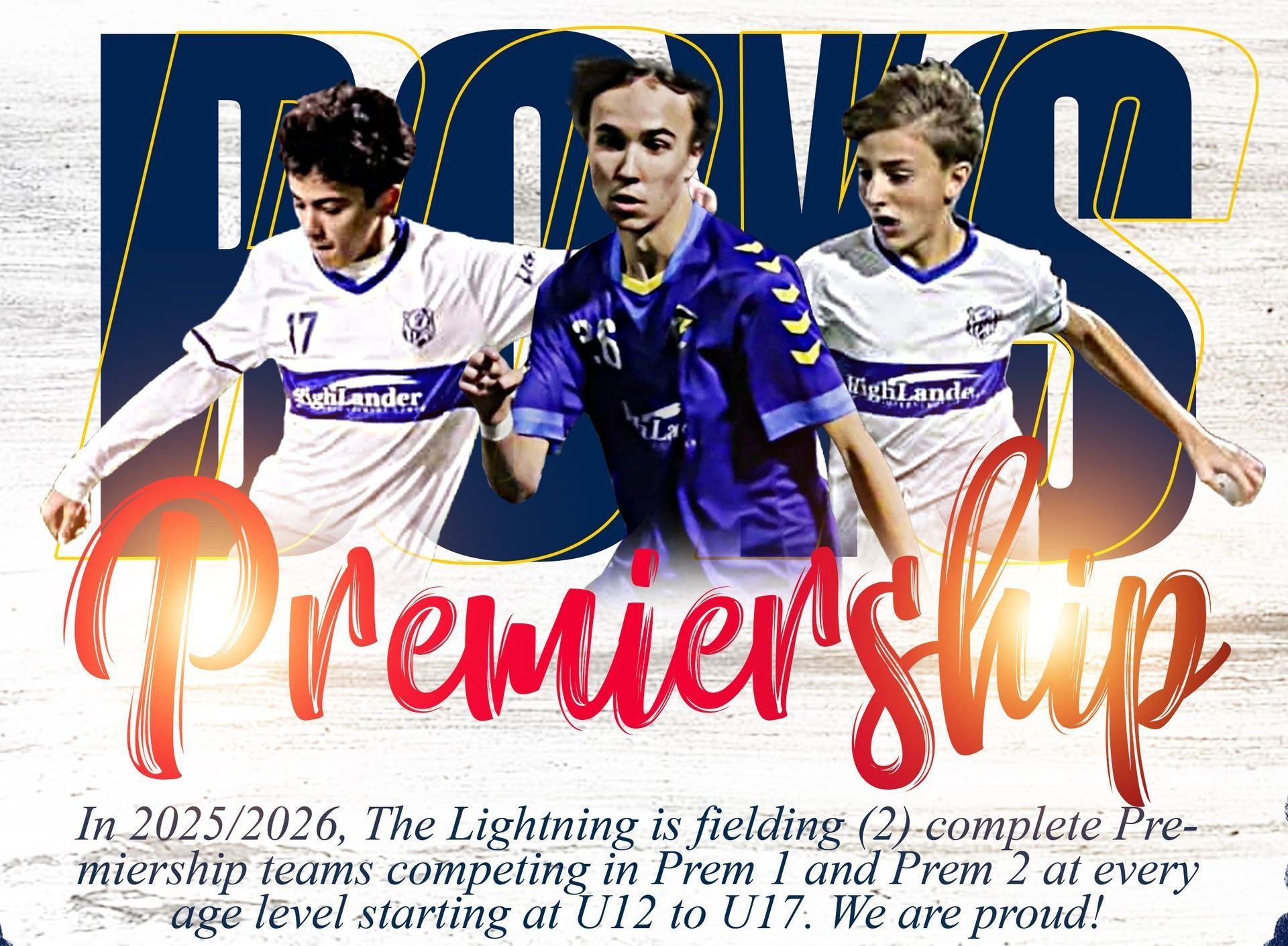 This 2025/2026 season, the Lightning is proudly fielding (2) Premiership teams u12 through u17 at every age group for boys. Our girl's program is expanding its efforts to get level with our boys, and we are excited about the upcoming year for all ages. We invite you to compete against the best teams in the area. Click here to tryout for the Lightning.