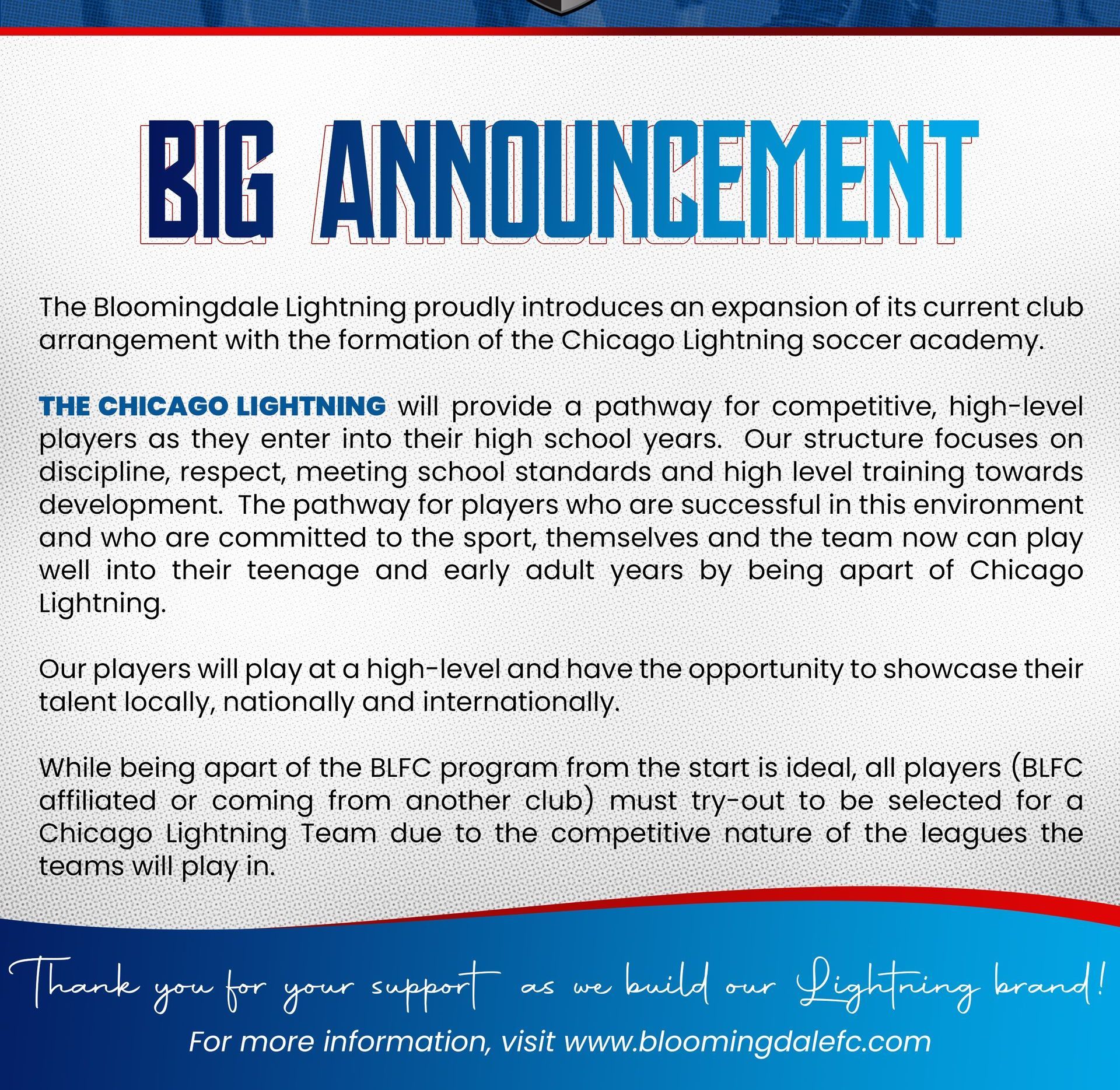 ALL RIGHTS RESERVED | BLOOMINGDALE LIGHTNING FC | CLUB OPERATIONS MALLORY GALLO 630-901-8989 | lightningfutbolclub@gmail.com